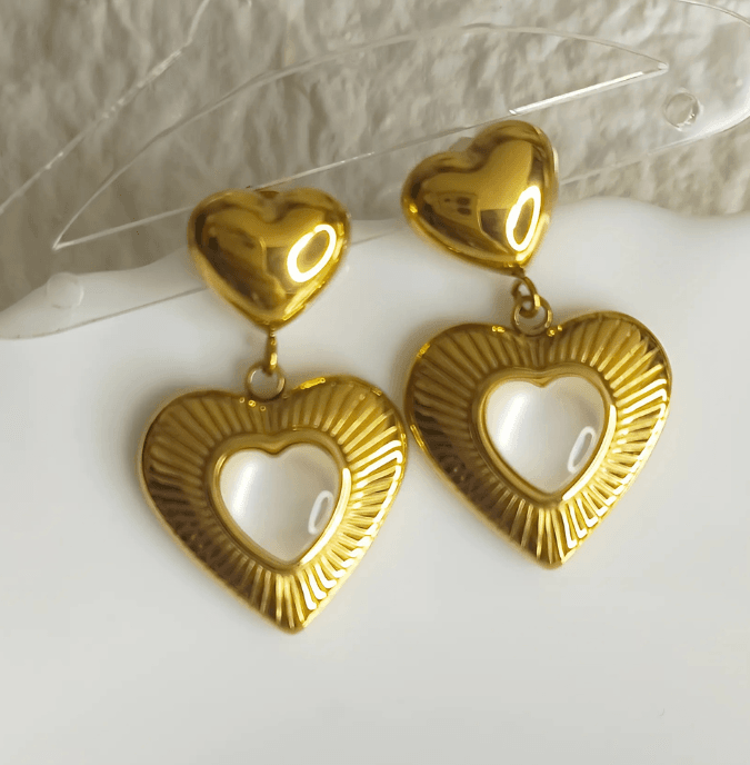 Elegant Amore Earrings featuring luminous Mother of Pearl—timeless beauty with a touch of romance.